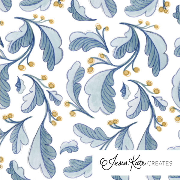 Blue floral leaf pattern
