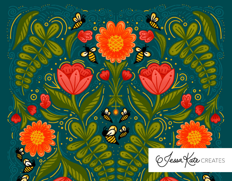 Florals and Bees illustration